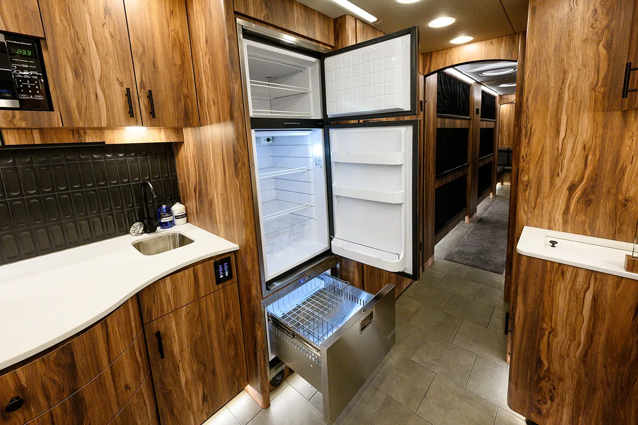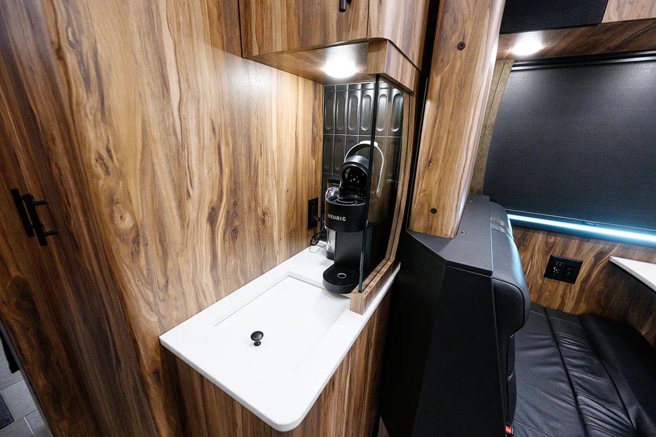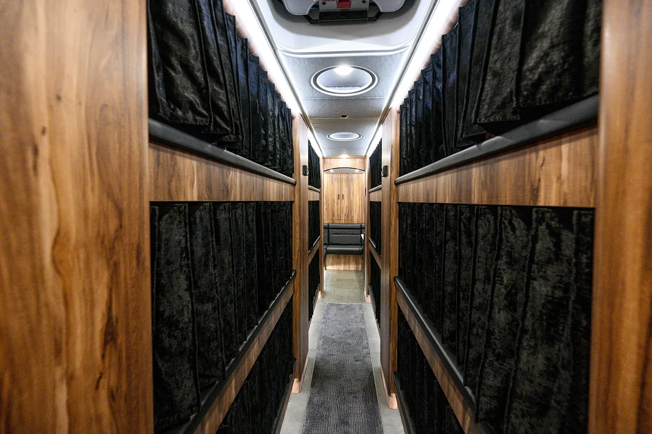 - 110 volt outlets and USB plugins throughout coach and sleeping berth