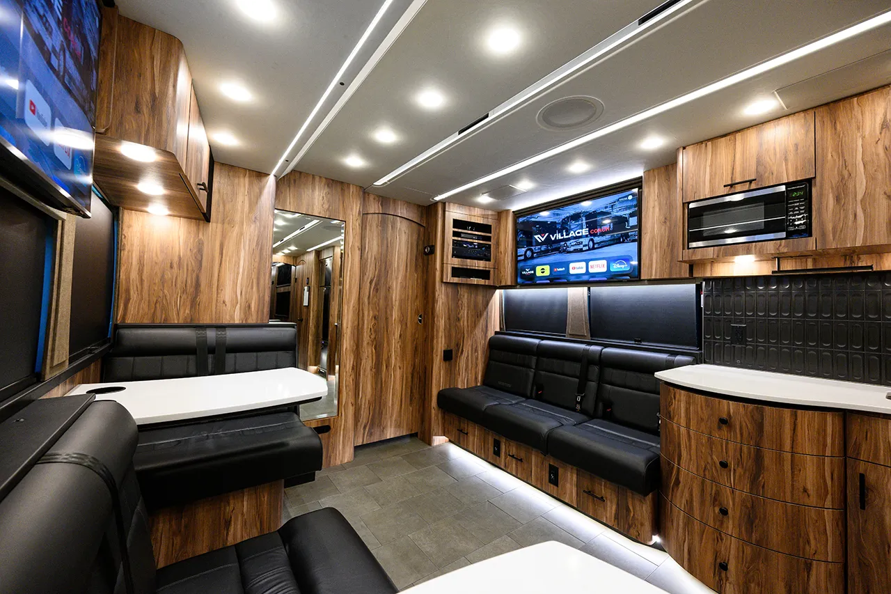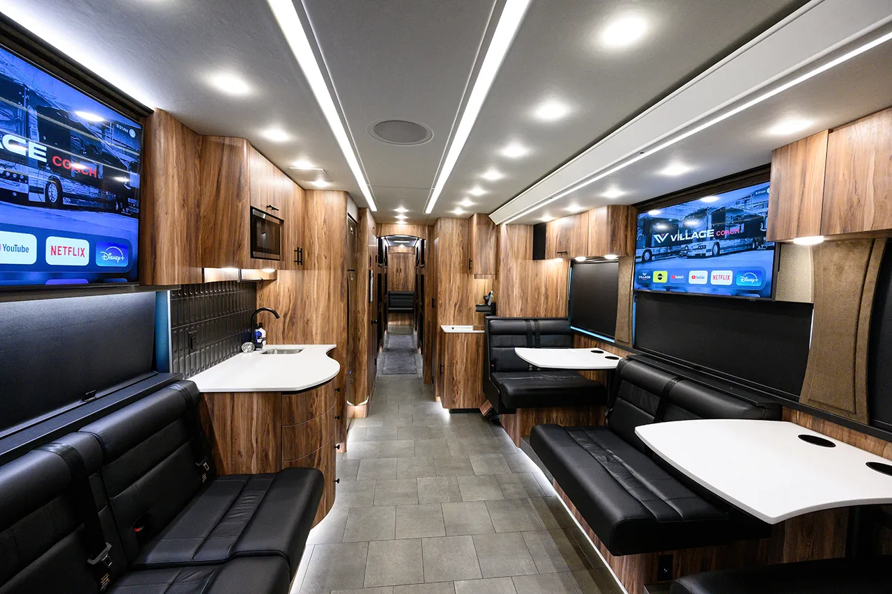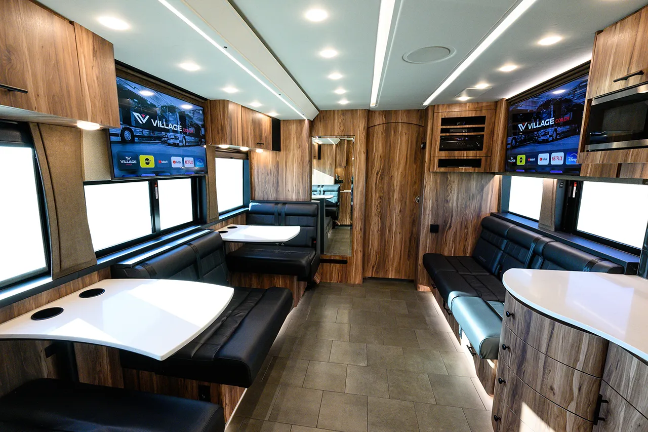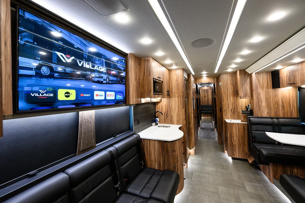 - Apple TV for streaming of preferred platforms in front and rear lounge